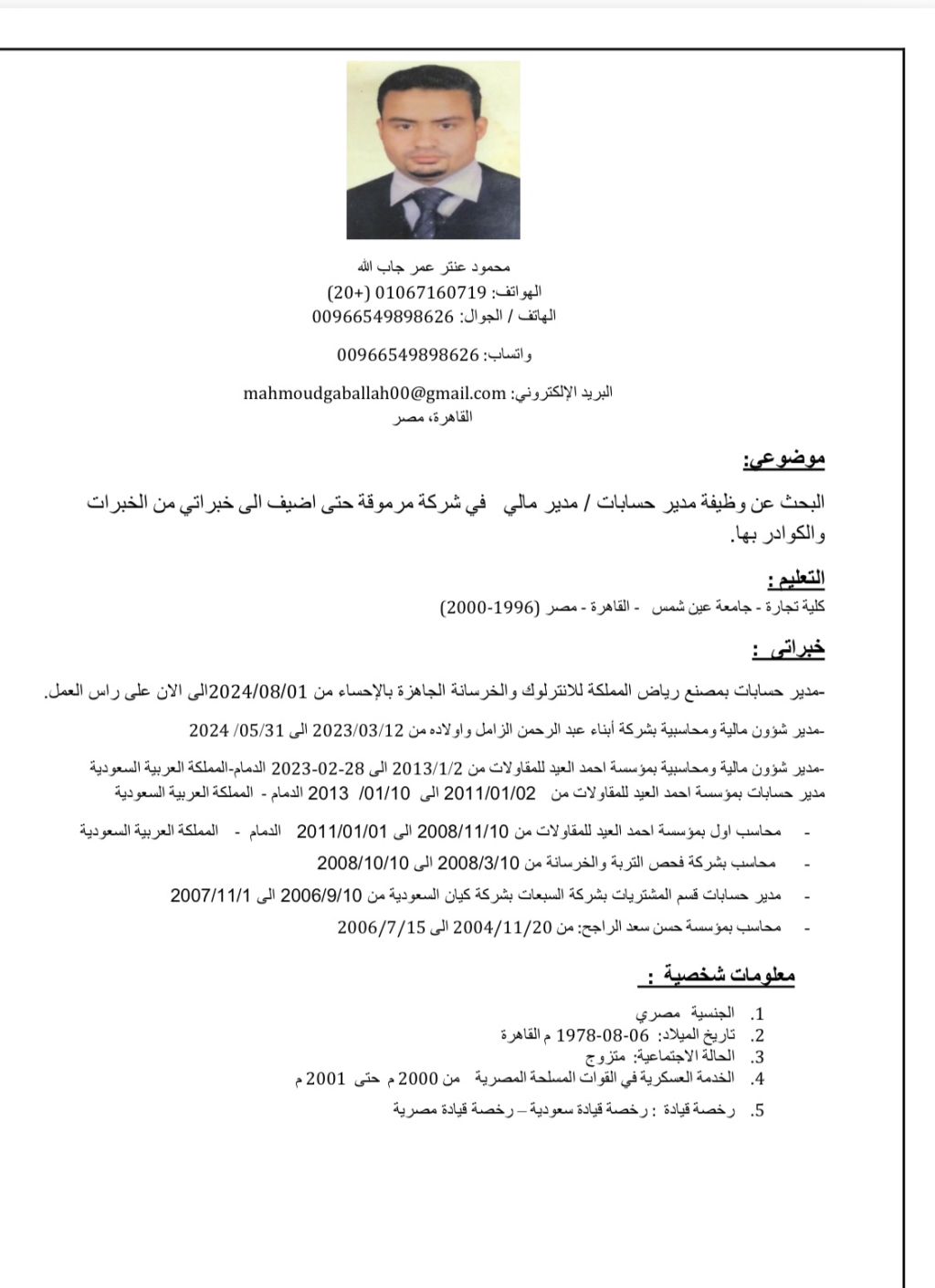 ابحث عن وظيفة مدير حسابات أو مدير مالي أجيد التعامل مع البرامج الحسابيه العاديه وبرامج أل ERP واعداد القوائم الماليه والتقارير المحاسبية ورفع اقرارات ضريبة القيمة المضافة ومراقبه مراكز التكلفة للبنود بالمشاريع والتقديم على القروض ووضع خطة في السحب والتسديد وكيفية توظيف القرض للحصول على أعلى فائدة ومتابعة معدل دوران البنود الربحيه