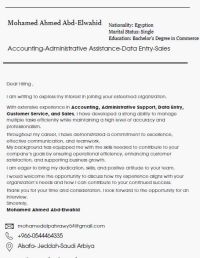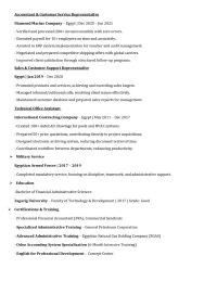 عمل في مجال محاسبة وإدارة يتمتع بخبرة 3 سنوات في اعداد التقارير المالية، الرواتب، الضرائب، والموازنات عبر أنظمة ERP (أودو) متميز في تنسيق سير العمل، إدارة السجلات والمكاتب، وبناء علاقات فعالة مع الموردين والعملاء. خبرة في خدمة العملاء والمبيعات ودعم المشاريع. جيد في استخدام برنامج Excel، مع فوق المتوسط الانجليزية مقيم في جدة