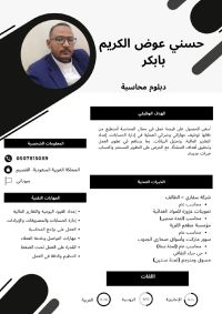 محاسب سوداني / الخبرات محاسب في أسواق صحاري الجنوب سنة ونصف + محاسب في شركة سفاري الطائف سنة + محاسب في مؤسسة فرسان الوطن سنة / المهام / اعداد التقارير اليومية والشهريه + ادخال الفواتير والأصناف + رفع ضريبة الدخل + إدارة مكان