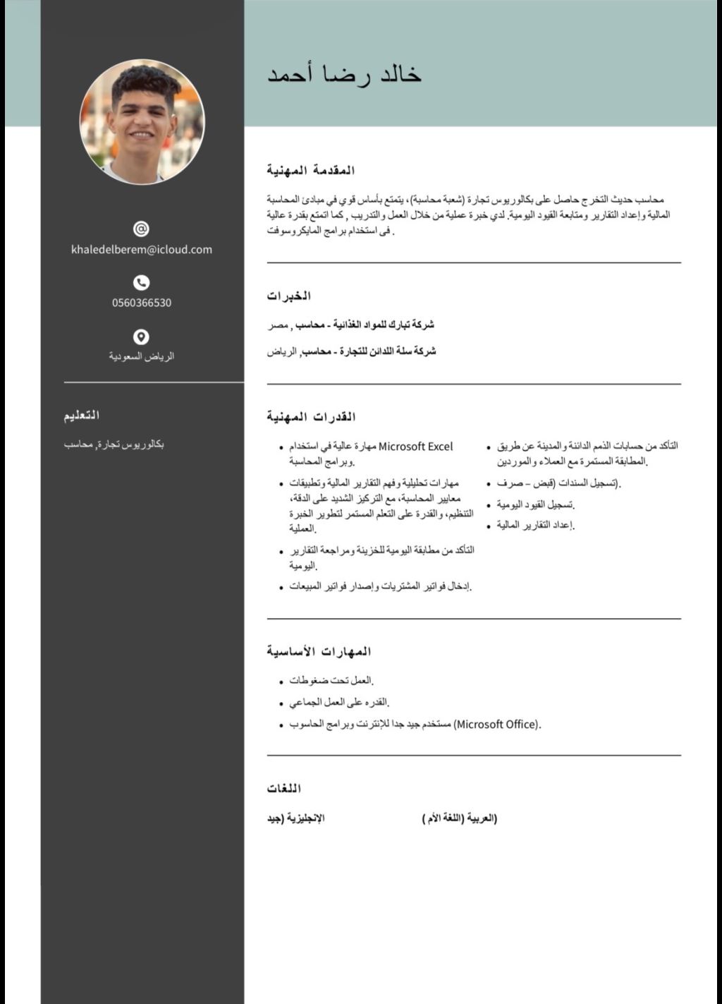محاسب مصري السن 23 سنة خبرة في جميع برامج Microsoft وبعض البرامج المحاسبية (الأمين) وبرنامج (Oddo)