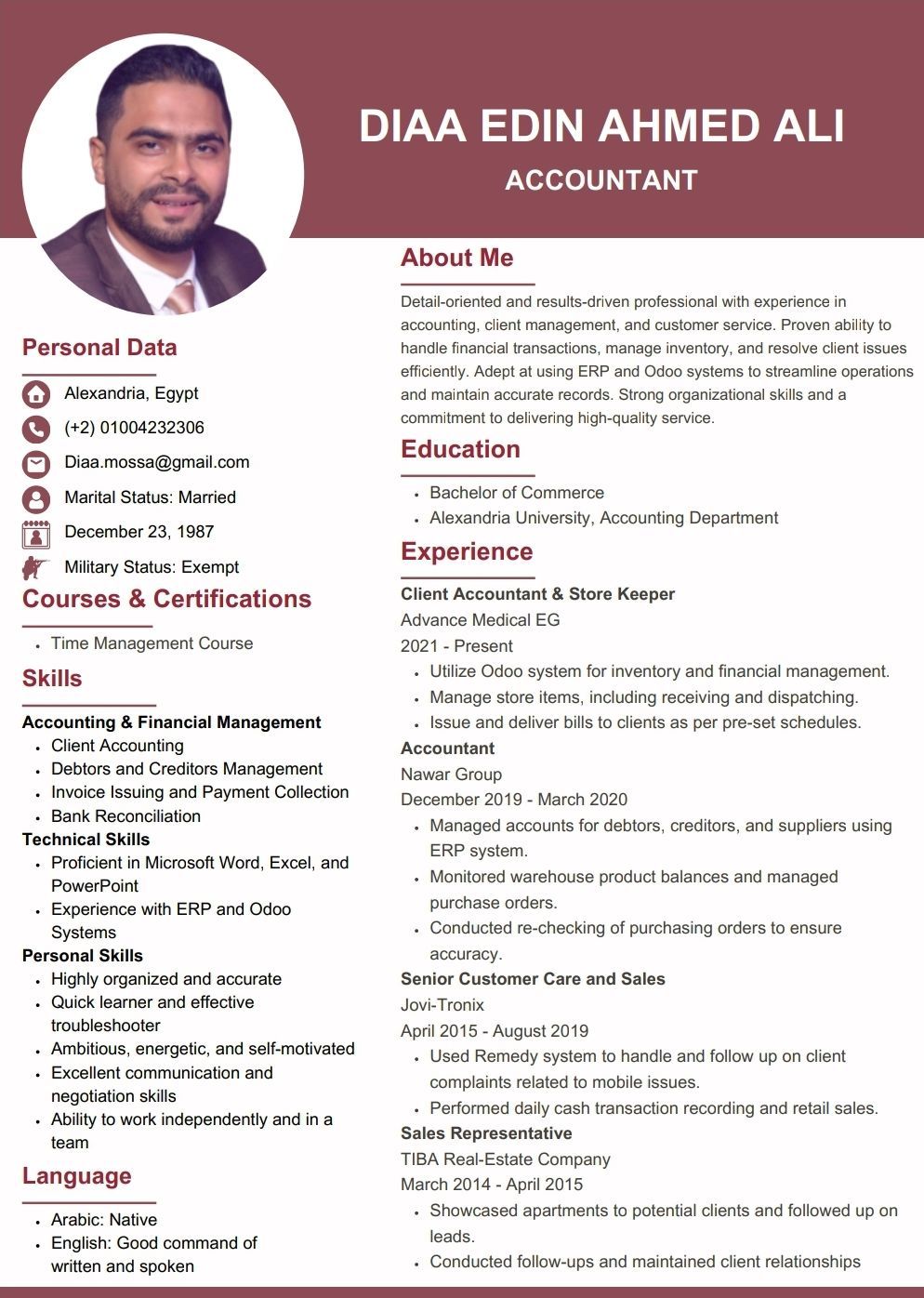 ابحث عن فرصة عمل في الحسابات خبرتي محاسب عملاء 4 سنين خبرة ومتابعة المناديب ومتابعة تحصيل الديون من العملاء سواء في فريق أو مستقل لغة انجليزية جيدة كتابة وتحدث متواجد في مدينة الخبر لدي اقامة قابلة للنقل يمكن العمل في أي مدينة في السعودية