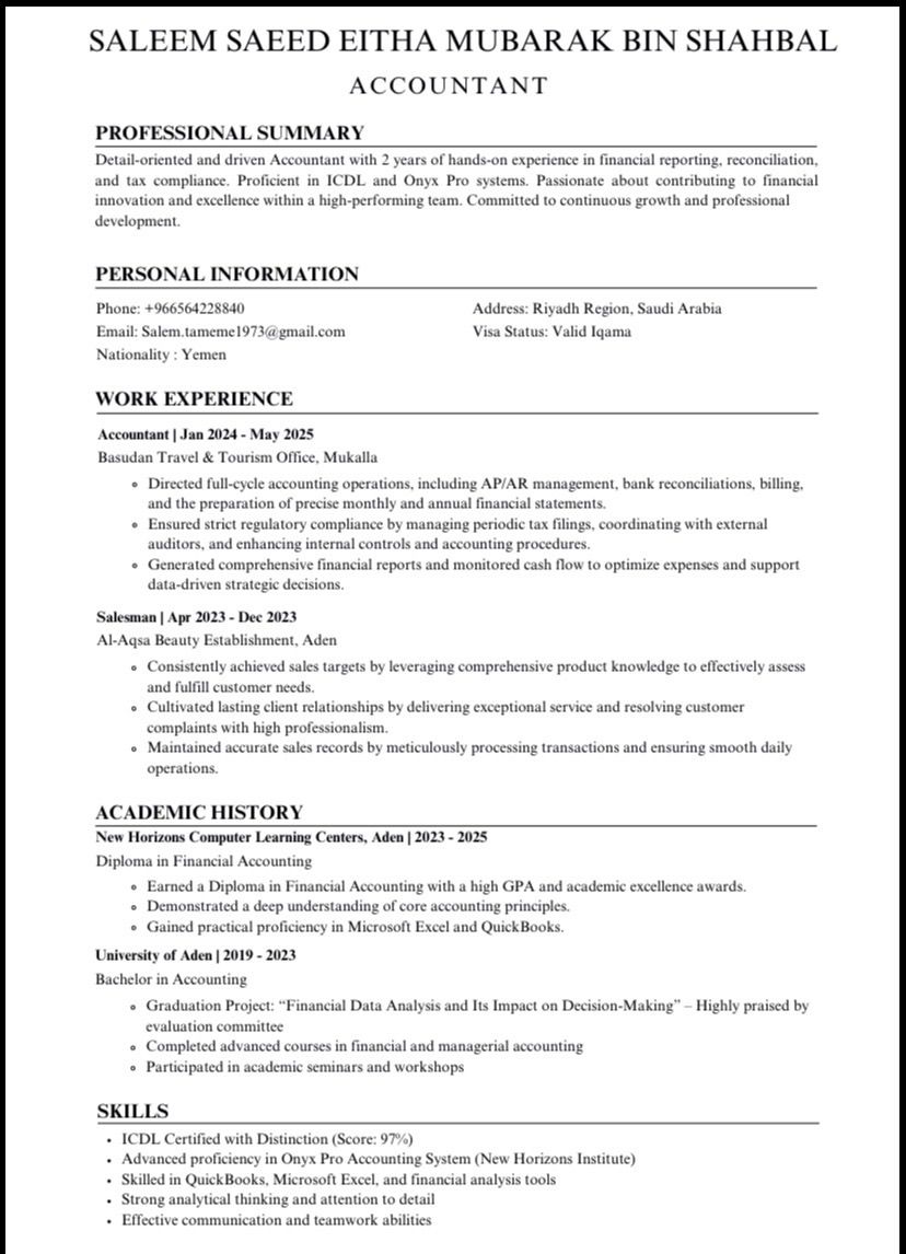 Seeking Work in Accounting in Saudi Arabia