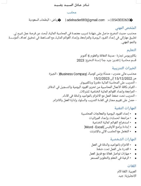 محاسب حديث التخرج لسنة 2023 بتقدير عام جيد جدا ابحث عن وظيفة داخل المملكة