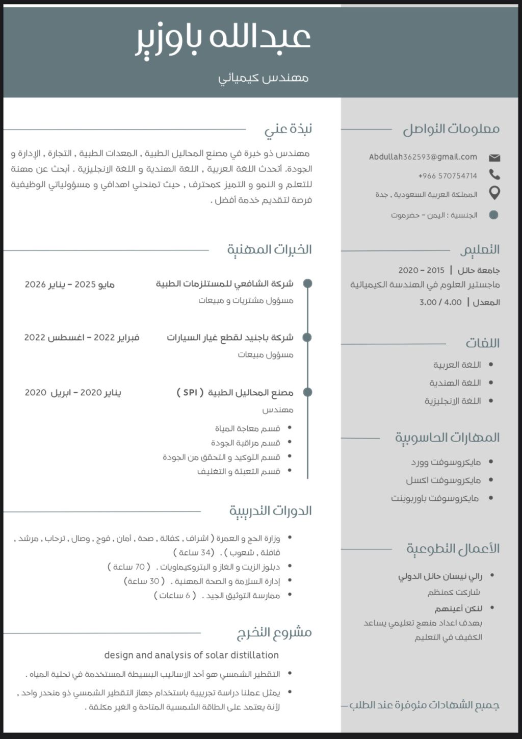 الجنسية يمني - حضرموت أجيد العربية والهندية والانجليزية. لدي خبرة في مصنع المحاليل الطبية والمعدات الطبية والتجارة والإدارة. للتواصل
