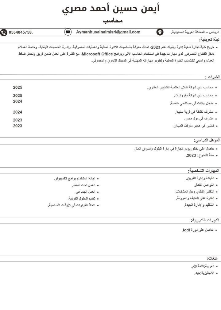 موجود في المملكة بدور على شغل محاسب مشرف مدخل بيانات موظف استقبال كاشير