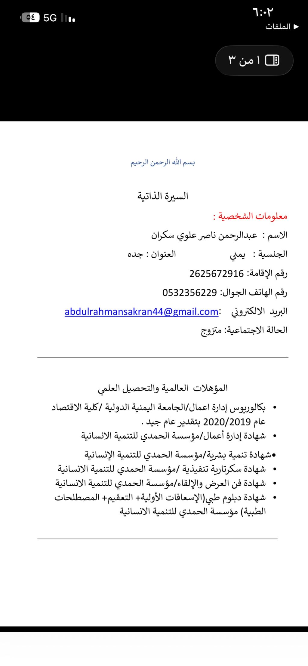 أنا عبدالرحمن ناصر تخصص ادارة أعمال ابحث عن عمل في الادارة ولدي خبرة ممتازة