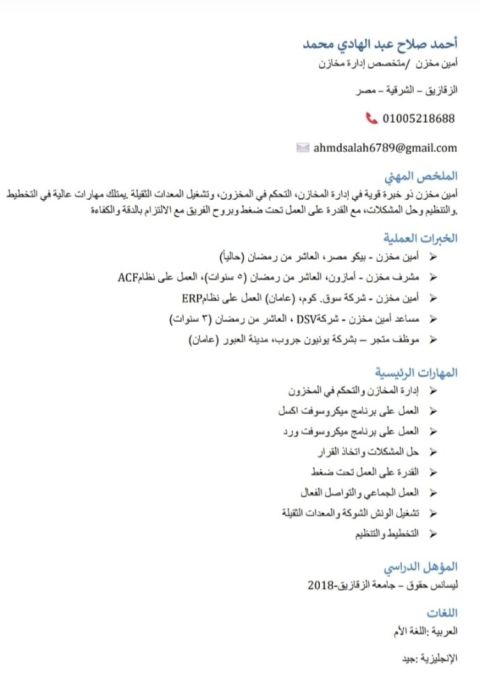 أمين مستودعات أجيد برامج (Excel - Word - ERB - acf) خبرة في المستودعات 12 سنة وأجيد إدارة المستودع من تنظيم المنتج والمراجعة اليوميه الجرد المنتظم وجرد النواقص وكتابة تقارير يوميه للمالك