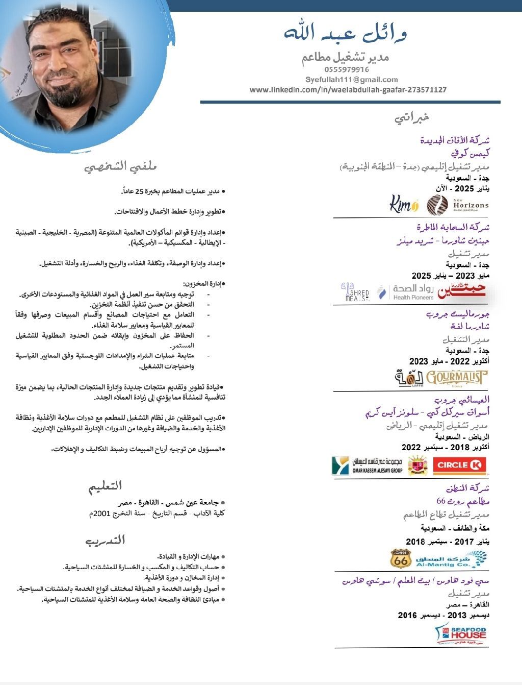 خبير متخصص في تشغيل وانشاء المطاعم والكافيهات بخبرة تزيد عن 20 عام في مجال الأغذية والمشروبات بمختلف تصنيفاتها وقوائمها متواجد في مدينة جدة ابحث عن منشأة عمل لديها تحدي كبير لتحقيق أهدافها
