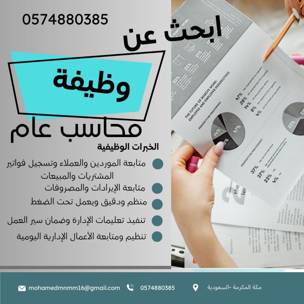 محاسب مالي واداري تنفيذ القيود اليومية ومتابعة فواتير المبيعات والمشتريات على Odoo ودفترة. متابعة المصروفات والايرادات ومطابقة الصندوق والبنك. المساعدة في اعداد التقارير المالية الشهرية. متابعة الرواتب والبدلات وتحديث بيانات الموظفين. التعامل الأساسي مع منصات قوى، التأمينات، مدد. أرشفة وتنظيم المستندات والفواتير