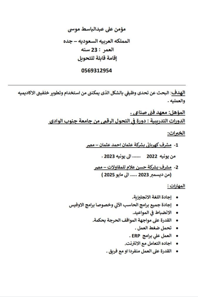 أحتاج الى عمل في ادارة الأعمال أو المشرفين أو السكرتارية وأجيد الخبرة في الحاسب الالى والمايكروسوفت والأوفيس والوورد الجنسية مصري العمر 23 سنة