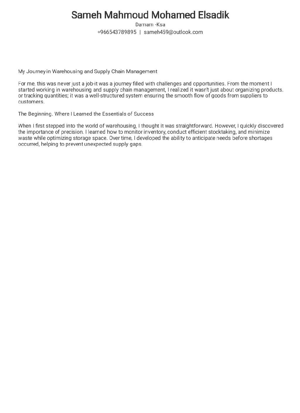 Warehouse and supply chain professional with hands - on experience in inventory management and daily operations (inbound/ outbound) Skilled in reducing waste, improving efficiency, and analyzing data using Excel. Seeking to join a dynamic team where I can add value and enhance operational performance