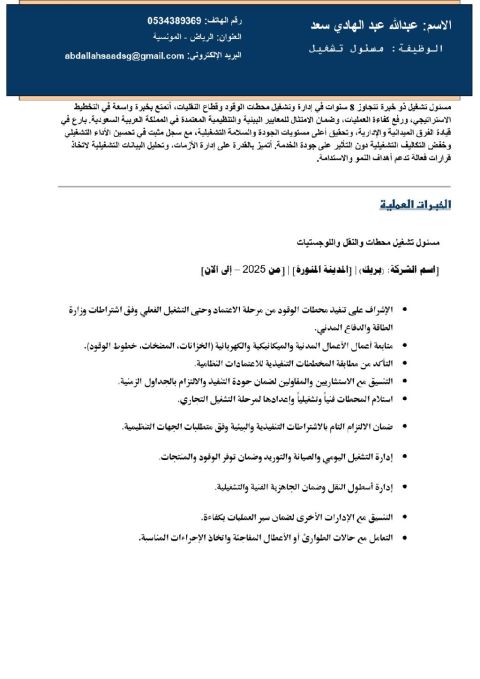 مسؤول تشغيل محطات وقود خبرة 8 أعوام