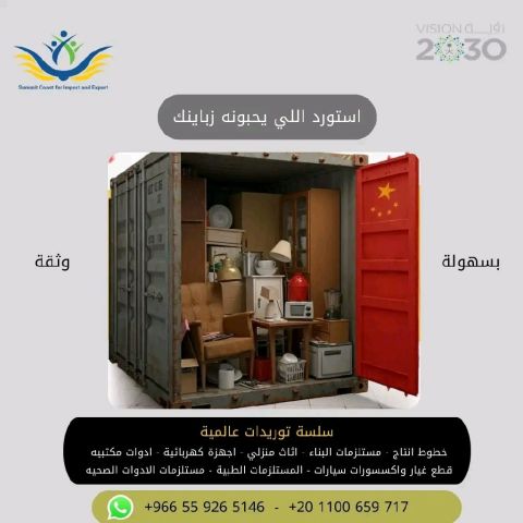 We offer high - quality and professional import services from China to meet all your needs, whether they are Construction supplies Snitary ware Home furniture Hotel and hospital furnishings Or any other products you need. Door - to - door import and shipping services We provide easy and safe shipping and customs clearance. Contact us now and get the best deals Alaa Mohamed Chinese translator