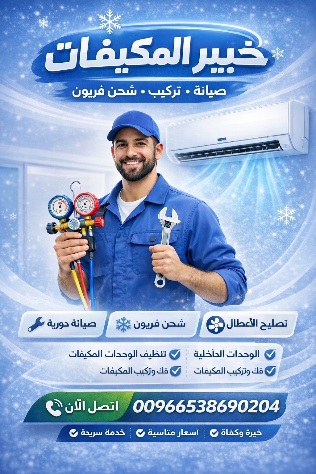 تعلن مؤسسة خبير المكيفات. عن توفير صيانة وتنظيف مكيفات تنظيف شامل للوحدات الداخلية والخارجية مع تسليك مجري الصرف للمكيف مع حل مشكلة تنقيط المياه للمكيف مع التعطير والتعقيم والتجفيف في الحال مع تعبئة المجانيون اتصل بنا الآن واحصل على أفضل عرض خصم يصل حتى 30% نغطي مناطق - جدة - مكة