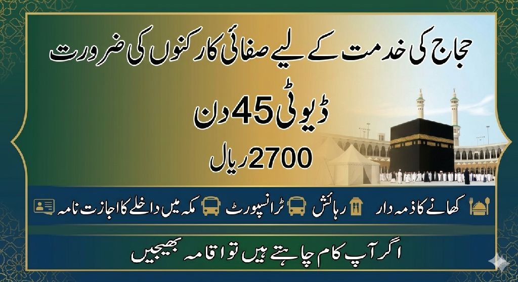مطلوب عامل نظافة خدمة حجاج 45 يوم شرط اقامات مهنية سارية كفالة موحدة أقل شيء كل 30 عامل على كفالة واحدة متاح جميع الجنسيات العمل في حي مني مخيمات الحج