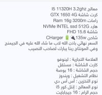 لابتوب لينوفو معالج I5 11320H 3.2ghz كرت شاشة GTX 1650 4G رامات Ram 16g 3200m هارد NVMe Intel ssd 512G شاشة 15.6 FHD شاحن CHarger 135w السعر نهائي 1900 ريال بإذن الله لاب ما شاء الله عليه في الجيمنج وفي المونتاج ربنا يبارك لصاحب النصيب