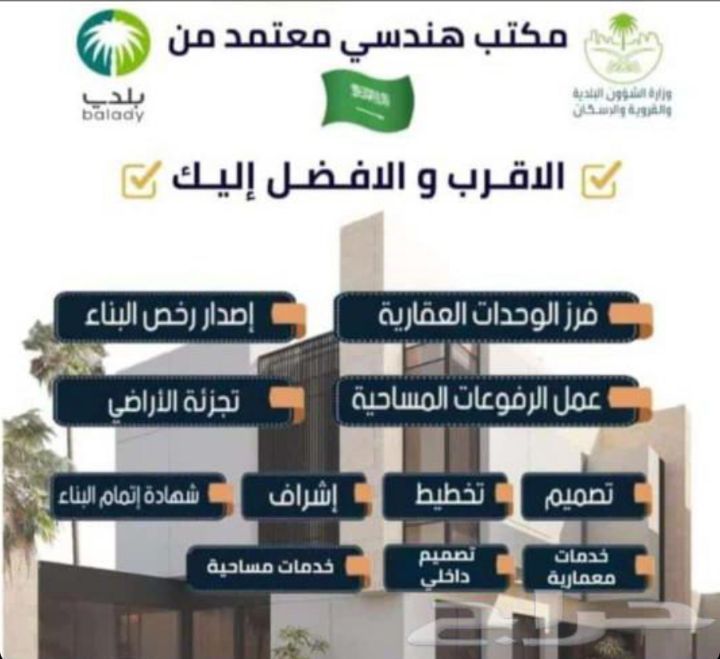 مكتب هندسي معتمد من أمانة جدة وهيئة المهندسين السعوديين 1 - استخراج رخص البناء ورخص الهدم (فلل - عمارات - استراحات تجاري اداري - محطات خدمة وكذلك دمج الصكوك وتحديثها - اصدار الكروكيات التنظيمي والكروكي المساحي وكروكى الاستحكام وكروكي الفرز والتقسيم (والرفع المساحي) باجهزة جى بي أس والتوتال وبأفضل الاجهزة المساحية اصدار قرار مساحي بغرض تعديل الصك واصدار هوية عقاريه - 3 فصل الدوبلكس وتقسيم الأراضي واس