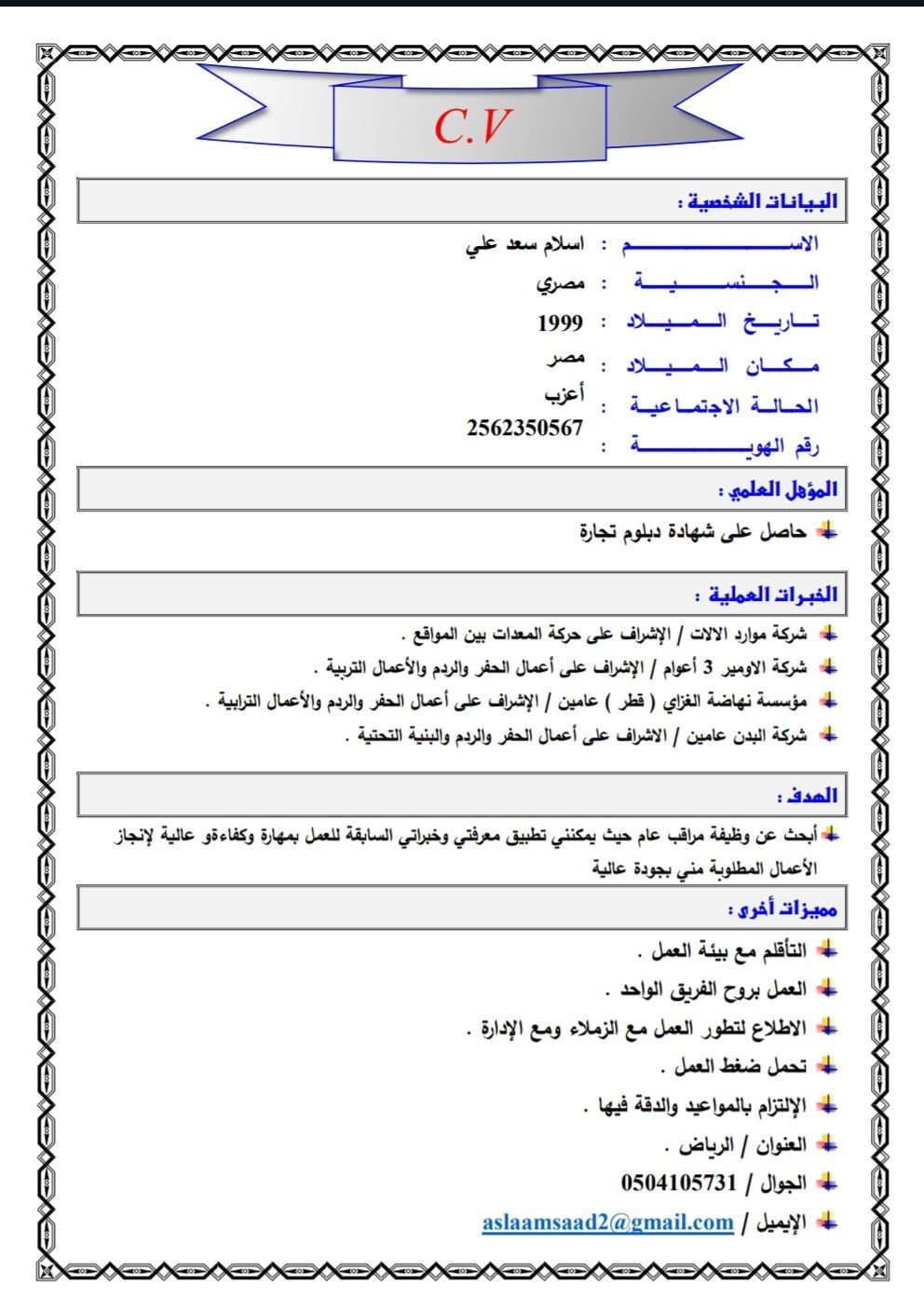 مشرف أعمال الحفر والردم وادارة وتشغيل المعدات الثقيله ومتابعه الأعطال متواجد في الرياض