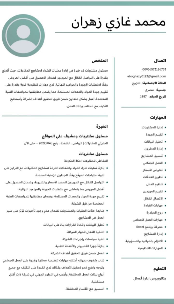 مسؤول مشتريات ومشرف مقاولات خبرة لدي القدرة علي الاشراف وإدارة المواقع وتنفيذ المخططات