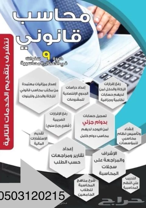 محمود خليل من مكتب الفالح محاسب قانوني معتمد. لتدقيق ورفع القوائم المالية لوزارة التجارة. رفع الاقرارات الزكوية والضريبية. عمل التقارير الخاصة الاختلاس التقارير المالية. رفع وخفض رأس المال والتقارير القضائية. دراسة الجدوى للمشاريع الرأسمالية والتمويلية. تصديق الاقرارات التابعة لأنشطة وزارة الثروة المعدنية