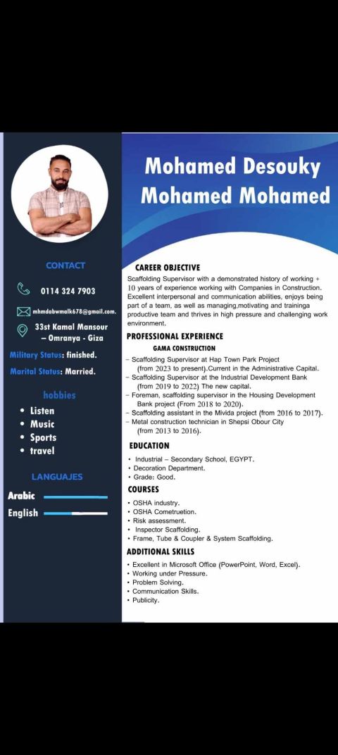 لجميع أنوع السقالات فك تركيب أو صيانة