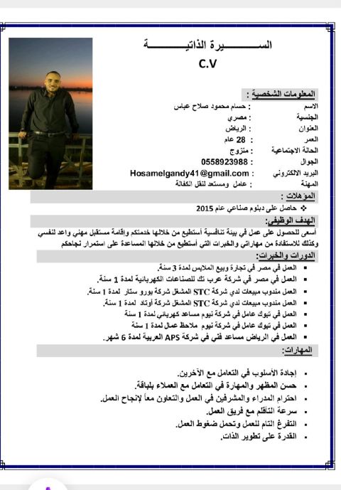 عامل وابحث عن فرصة عمل، لدي رخصة قيادة سارية. عملت سابقا كعامل في محل وسائق ولدي القدرة على استخدام الكمبيوتر