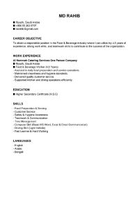 Experienced Food & Beverage Service Crew skilled in customer service, order taking, table serving, handling POS/ cash, maintaining cleanliness, and ensuring a safe and friendly dining environment