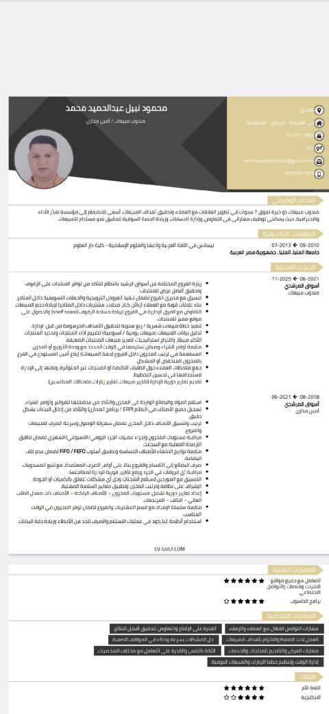 باحث عن عمل مؤهل عالي متواجد في الرياض إقامة سارية قابلة للنقل الفوري مصري الجنسية