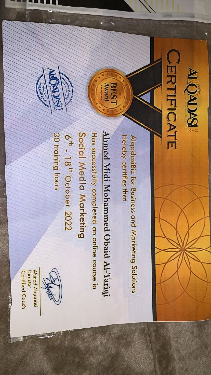 اسمي أحمد عمري 20 سنة شاب طموح جدا ابحث عن وظيفة تغطي تكاليف معيشتي ودراستي الجامعية مهتم بمجال ادخال المعلومات حضرت 3 دورات في مجال التسويق الالكتروني وعندي 3 شهادات حضور