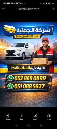 تعلن شركة الجزيرة اللوجستية ومقرها في جدة حي المعارض عن توفر فرص عمل مناديب توصيل براتب 2500 ريال حافز اضافي عند تحقيق التارجت واحتساب كل طلب فوق التارجت ب 5 ريال الشروط إقامة سارية ورخصة قيادة سيارة سارية المهنة لازم تكون سائق شاحنة صغيرة والرخصة نقل خفيف المميزات استلام سيارة موديل 2026 شريحة بنزين 50 ريال يوميا شريحة انترنت نقل كفالة فورا رجاء لا يتواصل معنا إلا من لديه كافة الشروط