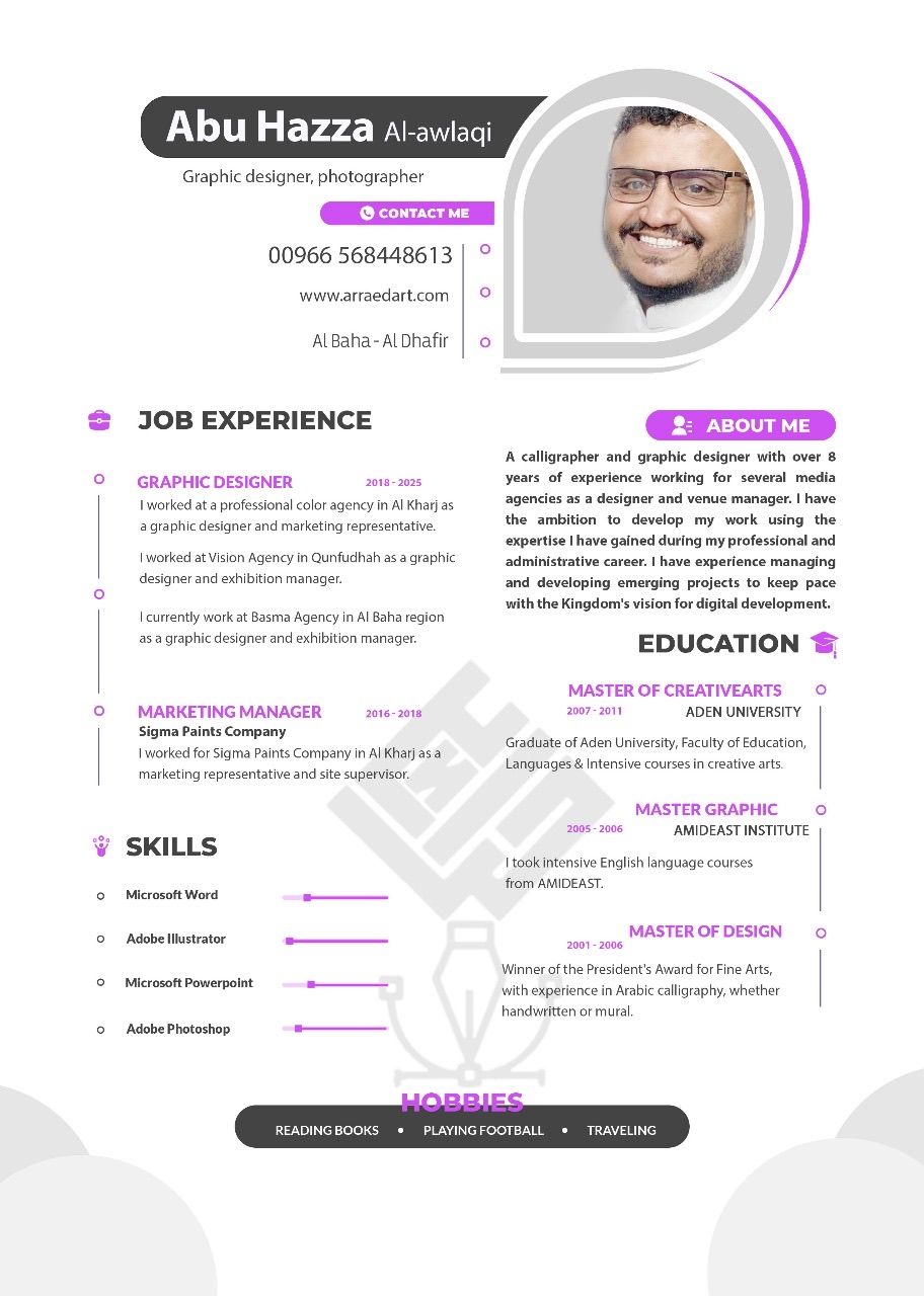 مصمم جرافيك بخبرة أكثر من 8 سنوات بمجال الدعاية والاعلان والمطبوعات ابحث عن عمل مصمم أول أو مدير وكالة دعاية واعلان أو شريك بنسبة