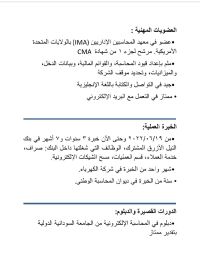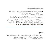 عمار عزت علي عمري 26. بكالوريوس محاسبة وتدقيق مالي. متمكن في الكمبيوتر وبرامج الأوفيس والأكسيل لغة انجليزية جيدة تحدثا وكتابة. خبرة 3 سنوات 7 شهور في حسابات البنوك. خبرة سنة في ديوان المراجعة القومي. شهر في شركة الكهرباء حسابات. مقيم في جدة. إقامة عامل تحميل وتنزيل. جاهز بإذن الله للعمل. السيرة الذاتية مرفقة