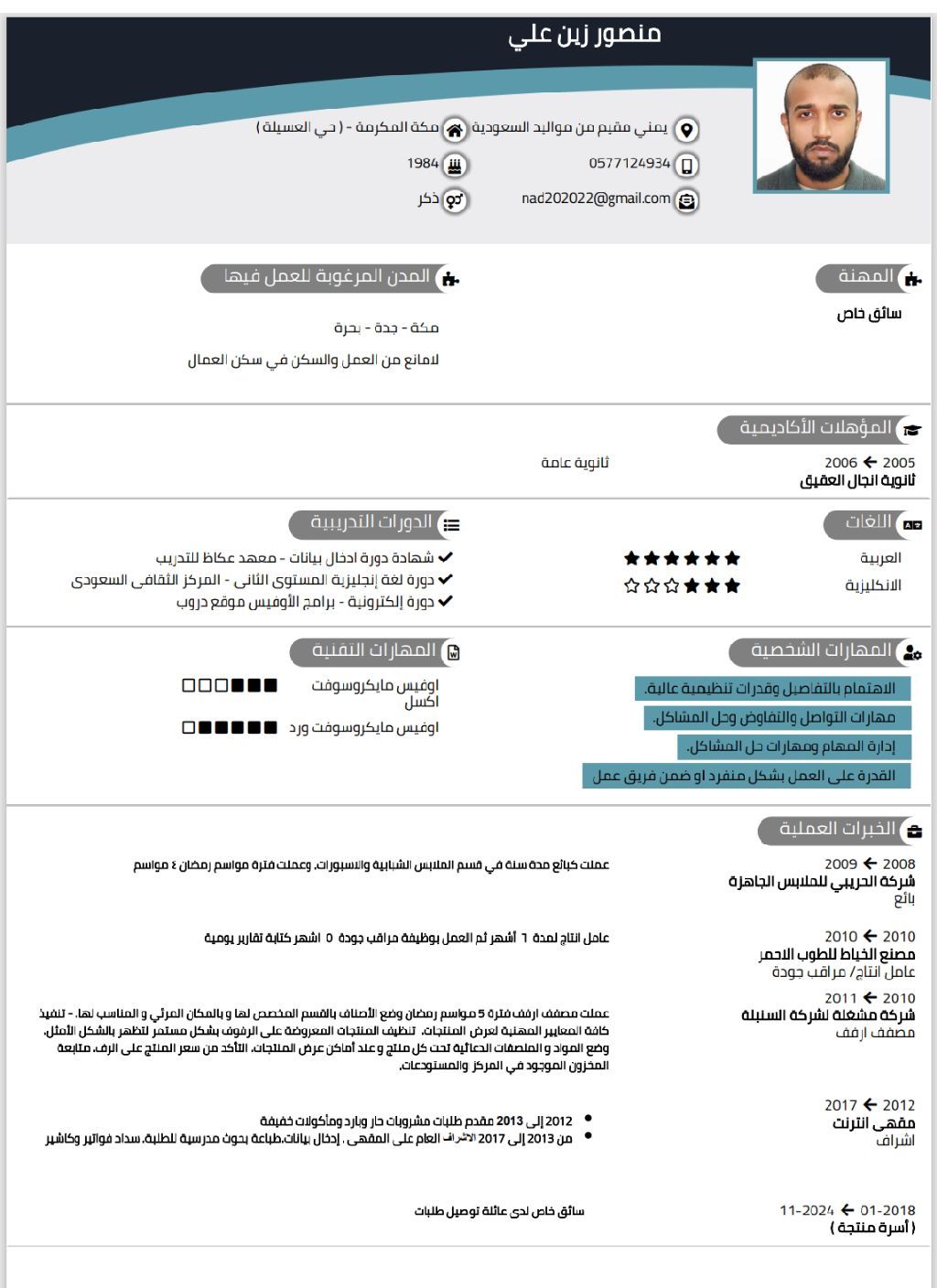 ابحث على وظيفة في مكة المكرمة أو مدينة جدة أو بحرة مع السكن. شركة مؤسسة مصنع. الوظائف المرغوبة مدخل بيانات مصفف أرفف اشراف عامل انتاج أو تعبئة وتغليف عامل مقصف عامل عادي موظف تحضير طلبات موظف شركة مطاعم - بائع. إقامة سارية المفعول. عدد مرات نقل الكفالة مرة واحدة