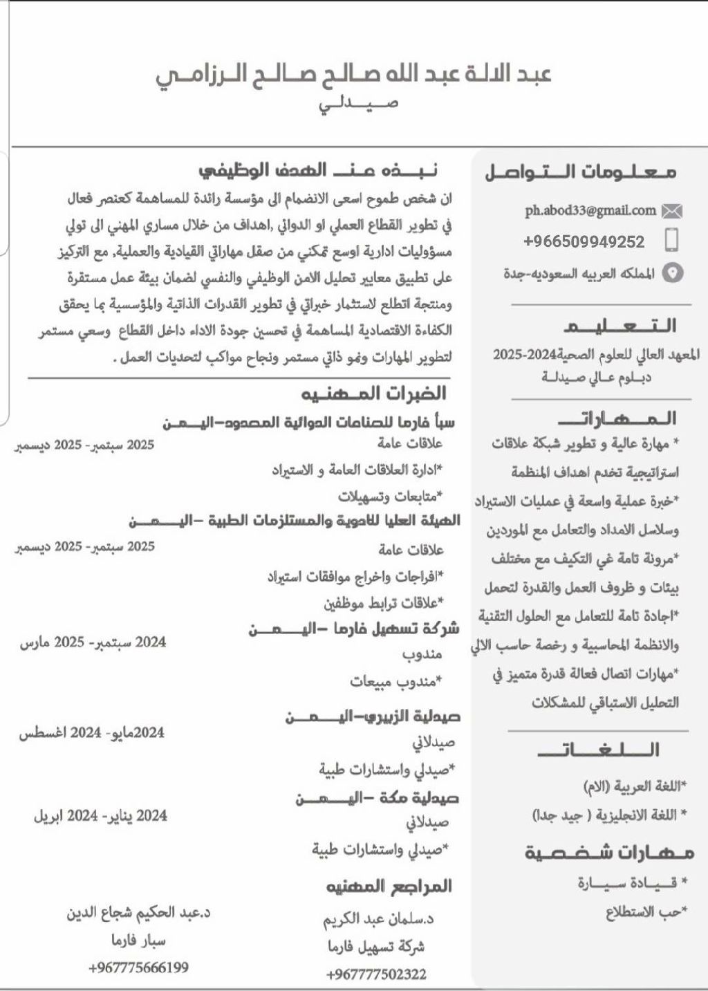 أرغب بالحصل على فرصة عمل في مجال طب أو مصانع ادوية أو ادارة علاقات العامة أو حسابات كاشير أو مندوب شركات توزيع وتحصيل أو سائق خاص أو سائق نقل متوسط براد