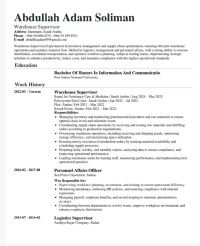 Seeking a Job Opportunity I am seeking a position as a Warehouse Supervisor. I have over 6 years of experience in warehouse management and operations, overseeing receiving and delivery processes, inventory management, and report preparation. I am available to start immediately