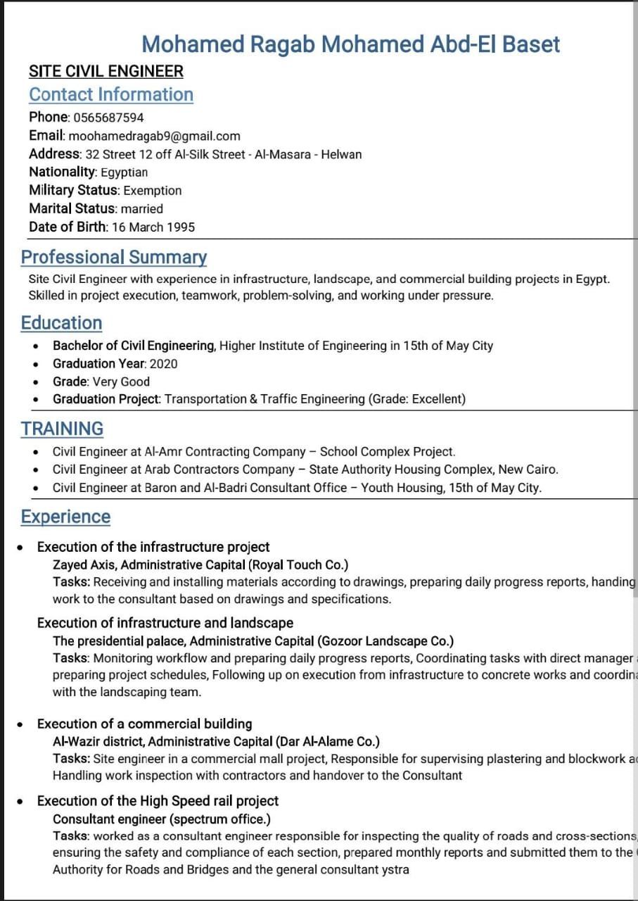 مهندس مدني تنفيذ (موقع) مقيم في مكة خبرة 5 سنوت بأعمال الخرسانات والتشطيبات واللاند سكيب