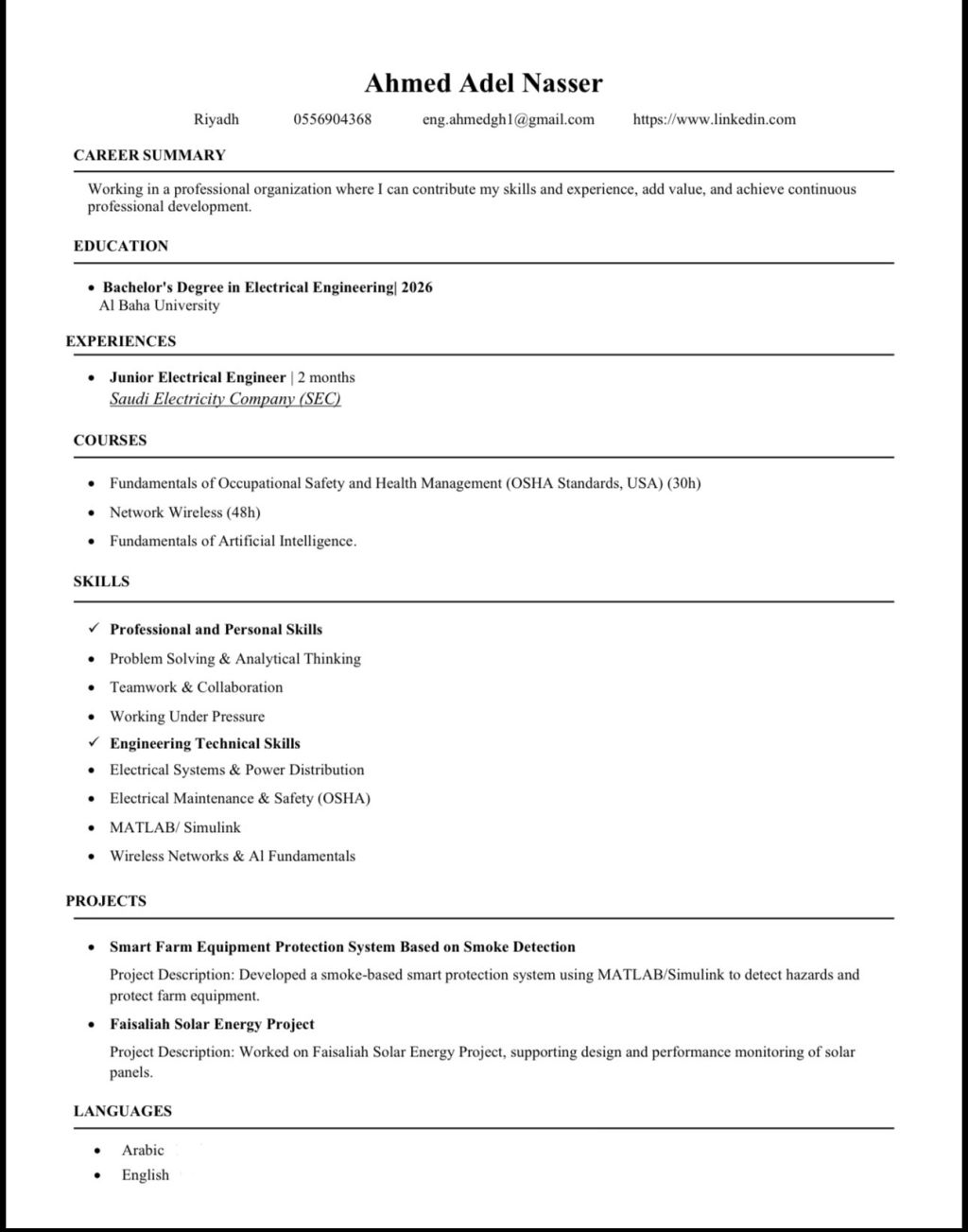 مهندس كهربائي حديث تخرج ابحث عن عمل في جدة أو الرياض