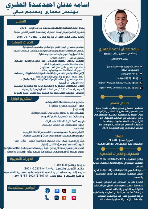 Architectural engineer seeking a job vacancy with over two years of experience in architectural design, executive drawings, site supervision, and material selection. Possesses thorough knowledge of Saudi building code requirements. Proficient in professional engineering software, including 2D and 3D design programs AutoCAD, Revit, SketchUp, and architectural rendering, output, and animation software