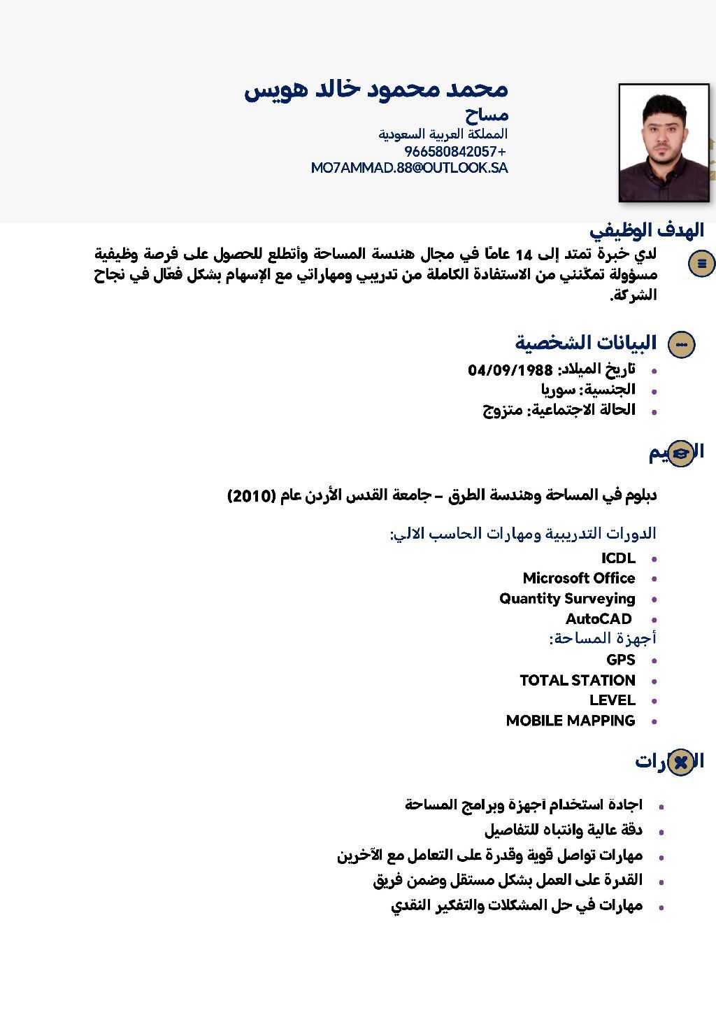 مساح عام ابحث عن عمل متاح للعمل فورا خبرة في مجال الطرق والانشاءات والبنية التحتية (لفل - توتل استيشن - جيبي أس - اوتوكاد)