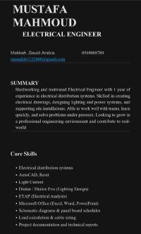 أنا مهندس كهرباء خريج 2024 مقيم في مكة ابحث عن فرصة عمل