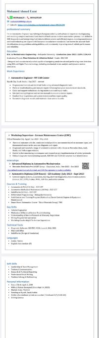 مهندس صيانة سيارات وتشخيص أعطال وبرمجة صيانة وخبرة في الكهرباء