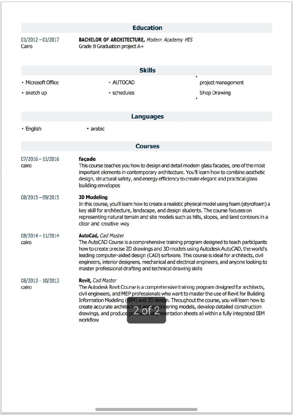 Architectural Engineer - 9 Years of Experience Extensive experience in supervising and executing architectural finishing works for residential, commercial, and hospitality projects on site, with full compliance with the Saudi Building Code and approved technical specifications. Strong ability to manage work teams and subcontractors, follow up project schedules, ensure quality control