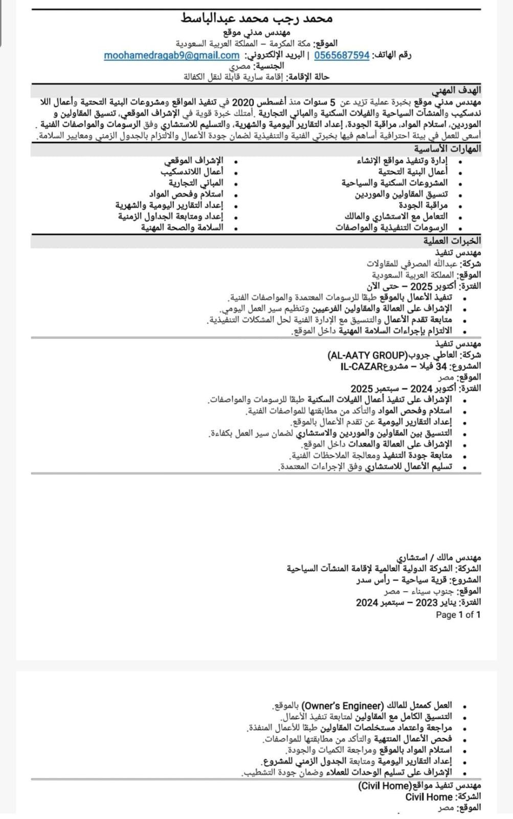 أنا مهندس مدني تنفيذ بخبرة تمتد الى 6 سنوات في تنفيذ وإدارة أعمال الخرسانات والتشطيبات واللاند سكيب والبنيه التحتية، مع التزام كامل بالجودة والجداول الزمنية. مقيم في مكة المكرمة، وأتطلع لفرصة للانضمام الى فريقكم والمساهمة بخبرتي في مشاريعكم الحالية أو القادمة
