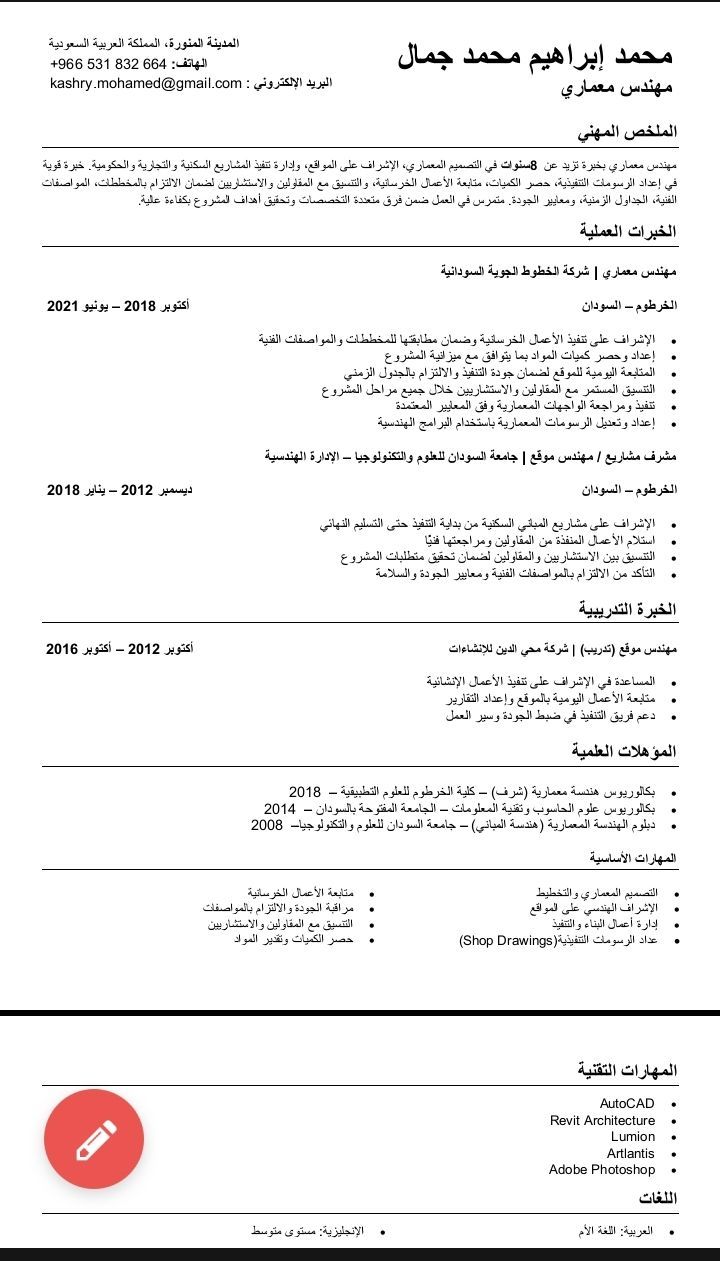 مهندس معماري خبرة 8 سنوات اشراف علي التشطيبات استلام الأعمال الانشائية اعداد جداول كميات عمل تقراير خبرة في التصاميم معمارية واجهات