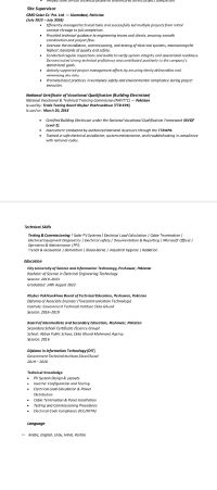 Looking for a electrical engineering or electrical supervisor or electrical Foreman jobs