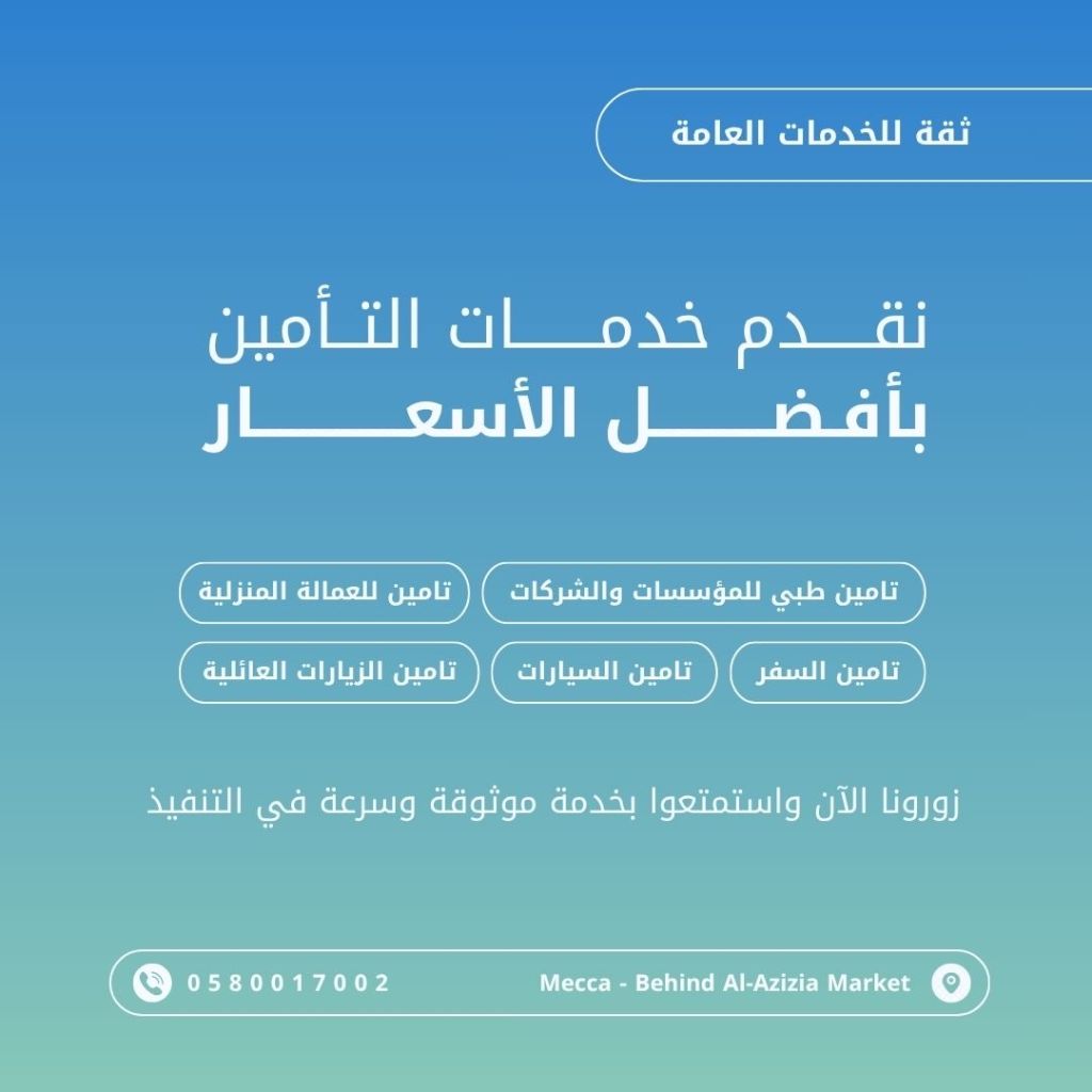 ثقة للخدمات العامة لسنا الوحيدون نتميز بالسرعة والانجاز، ثقتكم محل اهتمامنا وعنايتنا