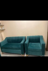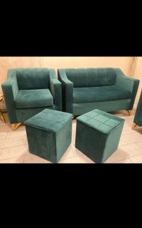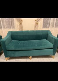 كنب أخضر غامق نظيف للبيع مكون من 5 قطع 2 قطعتان مفرد و2 قطعتان أبو ثلاثه أشخاص و1 أبو أربعه أشخاص مع طاولة أن 600 ريال