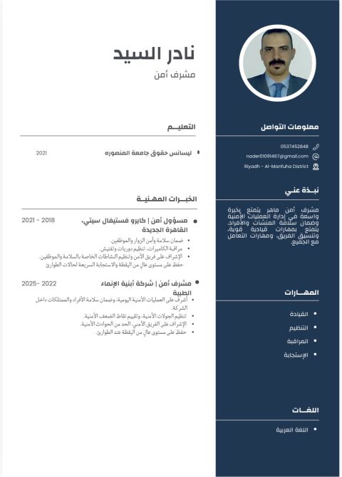 أنا شاب مصري ابحث عن عمل ضروري في مجال الحراسة والأمن ومعي إقامة سارية