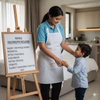 A female housemaid is required Salary 1500 riyals Residential owner Job is to look after one child and do housework One day off per week Only Bangladesh, India, Pakistan are eligible. District Mecca, City Mecca Aziziya, district Mecca city Mecca