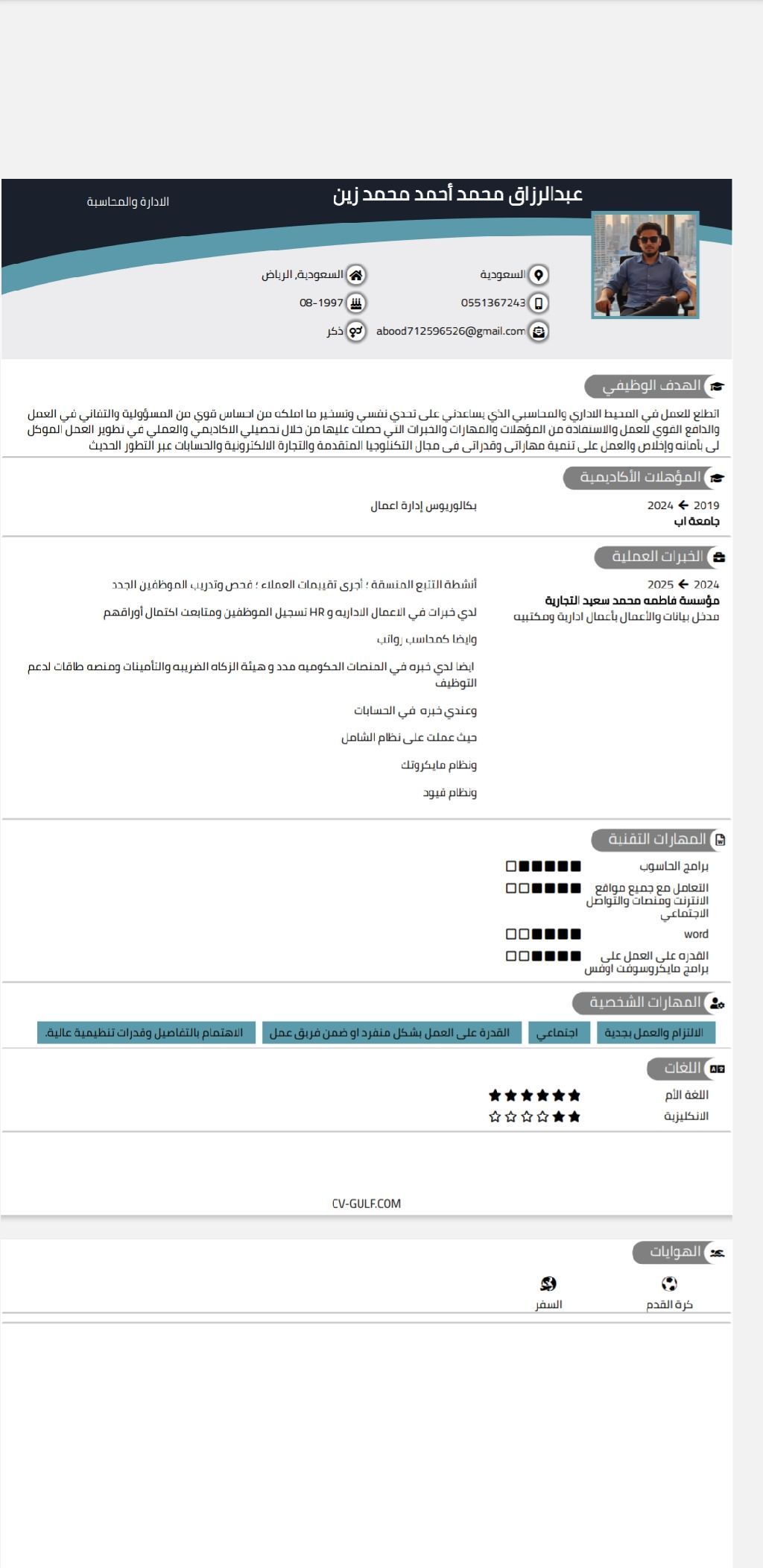 I am looking for an administrative or accounting job. I have experience in administrative work and HR, registering employees and following up on the completion of their papers, and also as a payroll accountant. I also have experience in the government platforms, Madad, the Zakat Tax and Insurance Authority, the Qawi and Ajir platform, and the Taqat platform for employment support